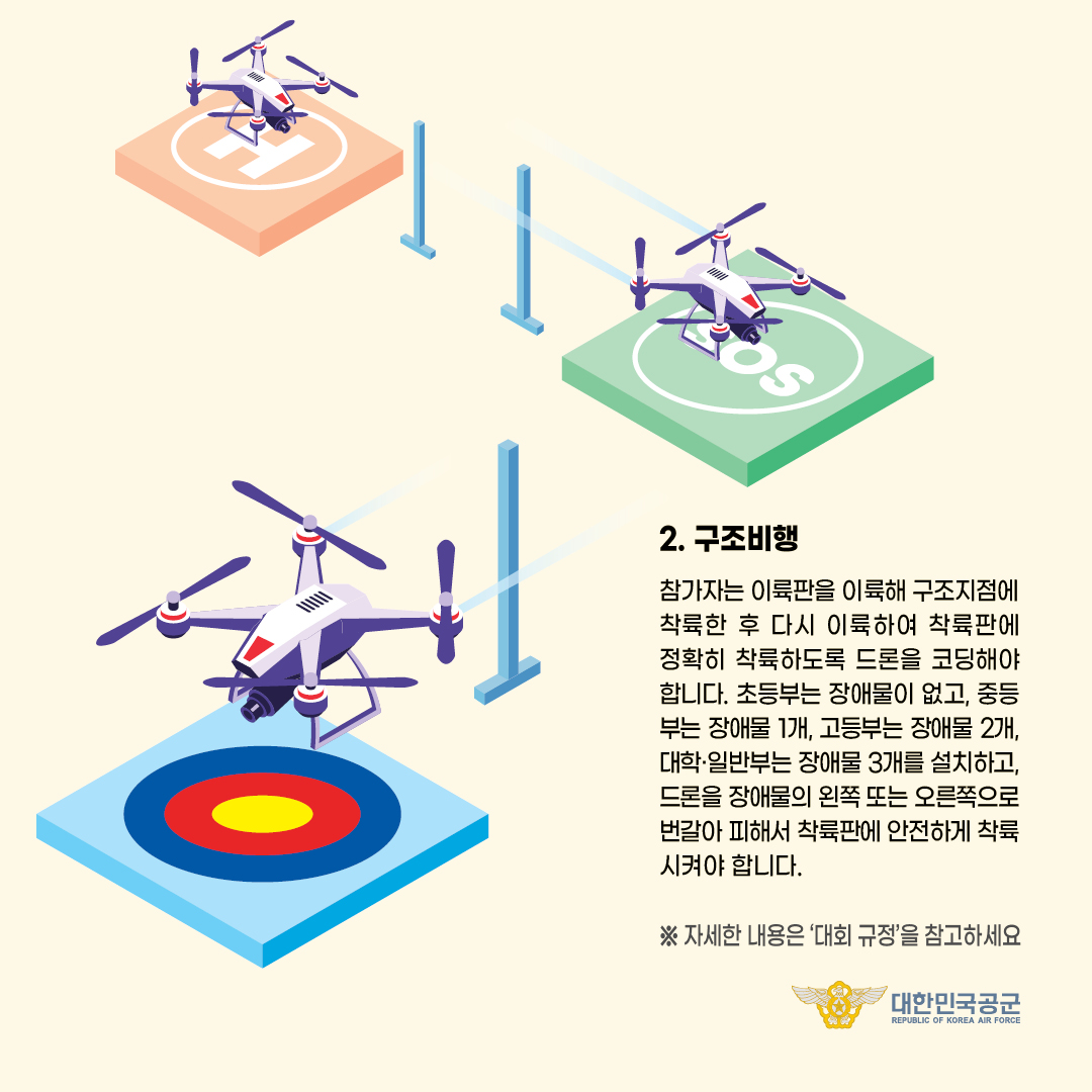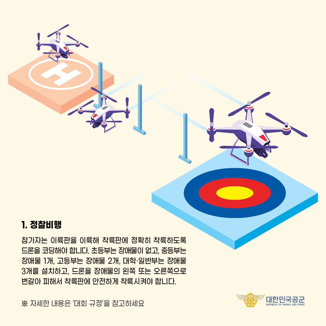 1) 정찰비행 : 비행경로 코딩을 통해 장애물 회피 및 안전착륙