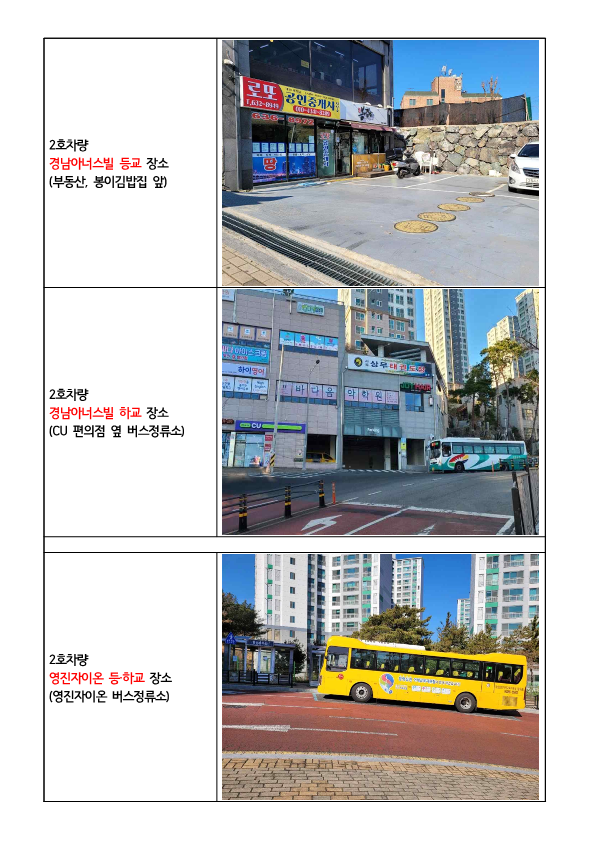 3. 통학 버스 이용 학생의 미 등교 혹은 통학 버스 탑승에 문제가 있을 경우 탑승 보호 선생님께 꼭 연락 바랍니다.