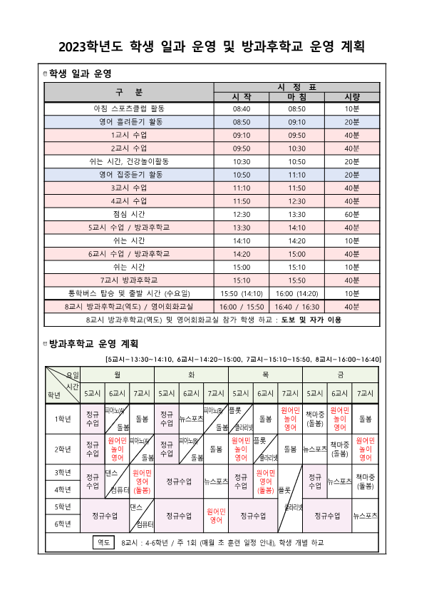 2023학년도 학생 일과 운영 및 2학기 방과후학교 운영 계획
