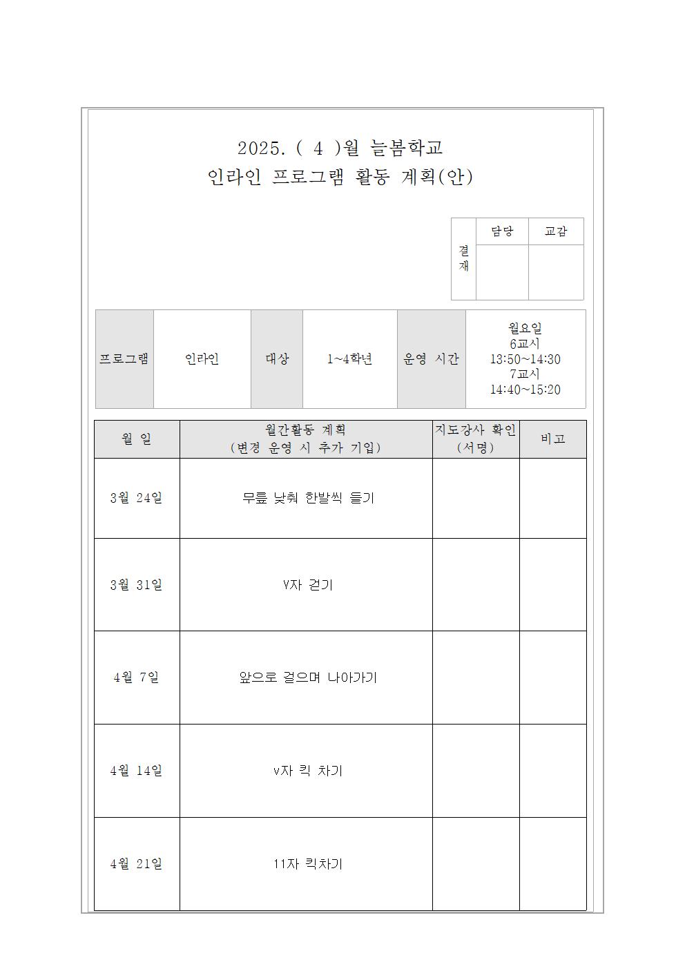 2025. 3월 인라인교실 활동 계획(안)