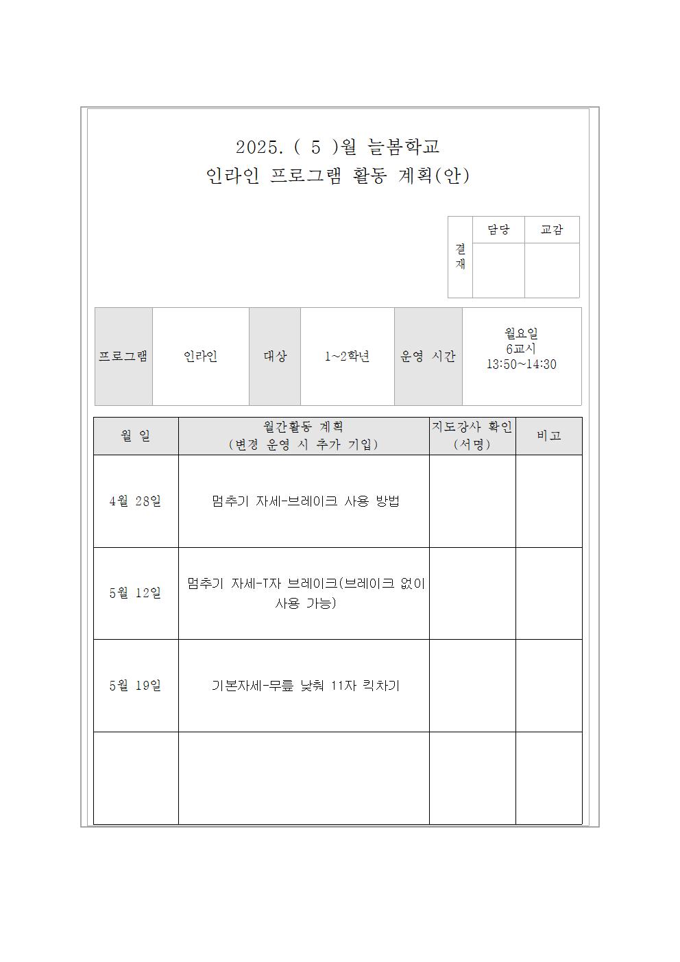 균형감각과 리듬감을 익히는 뉴스포츠 *축구교실*